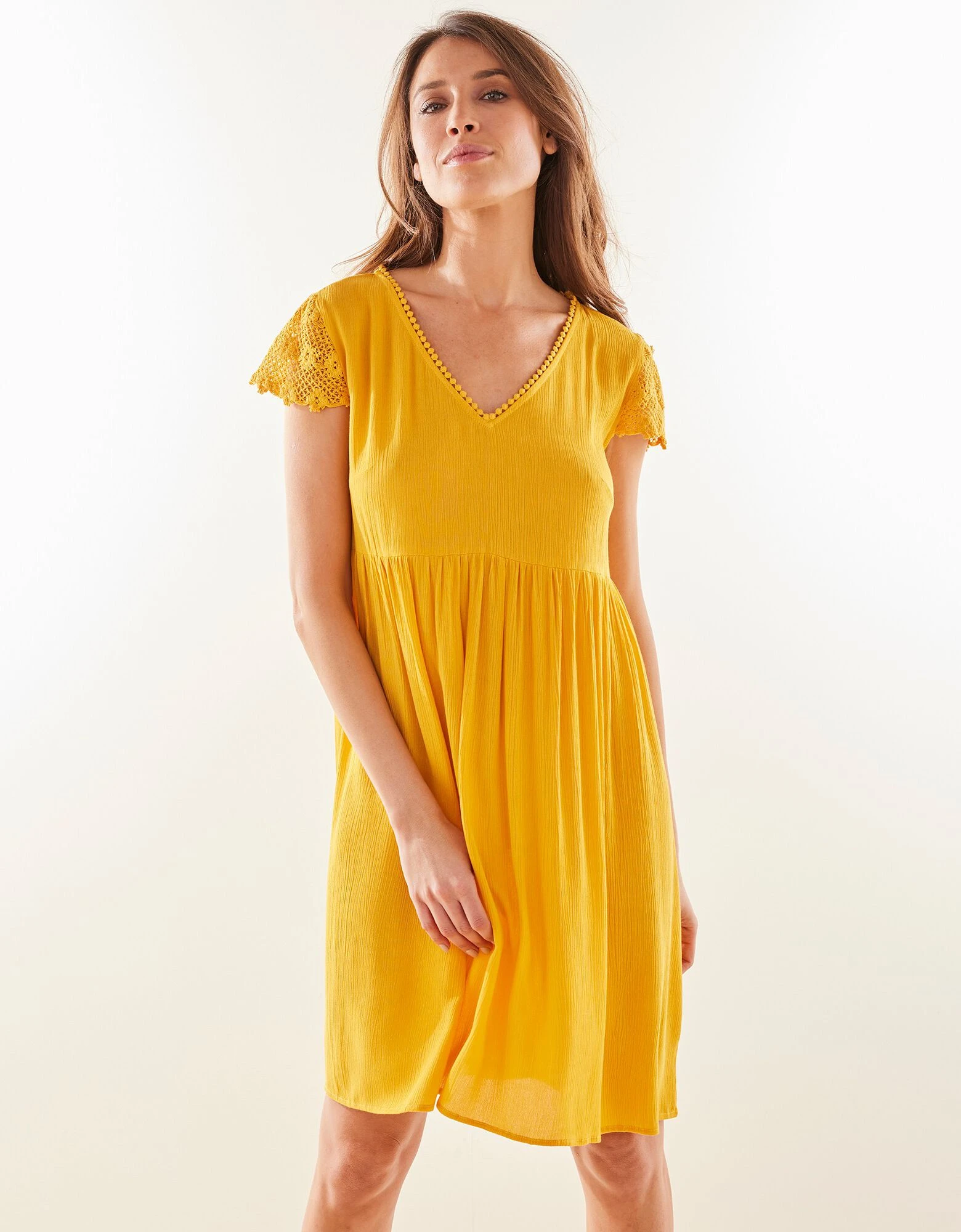 Blancheporte Chemise De Nuit Crépon De Viscose Et Macramé