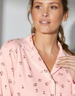Blancheporte Chemise De Nuit Imprimée “tulipes” Boutonnée Col Tailleur Manches Longues