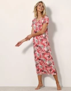Blancheporte Chemise De Nuit Longue Imprimée Fleurie – Manches Courtes