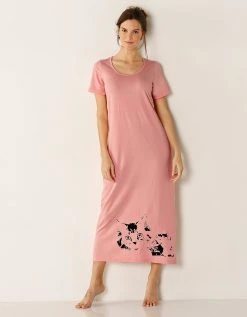 Blancheporte Chemise De Nuit Longue Manches Courtes – Imprimé “chat”